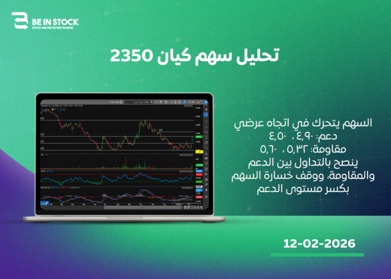 السهم يتحرك في اتجاه عرضيدعم: 4.90 ، 4.50مقاومة: 5.32 ، 5.60ينصح بالتداول بين الدعم والمقاومة، ووقف خسارة السهم بكسر مستوى الدعم