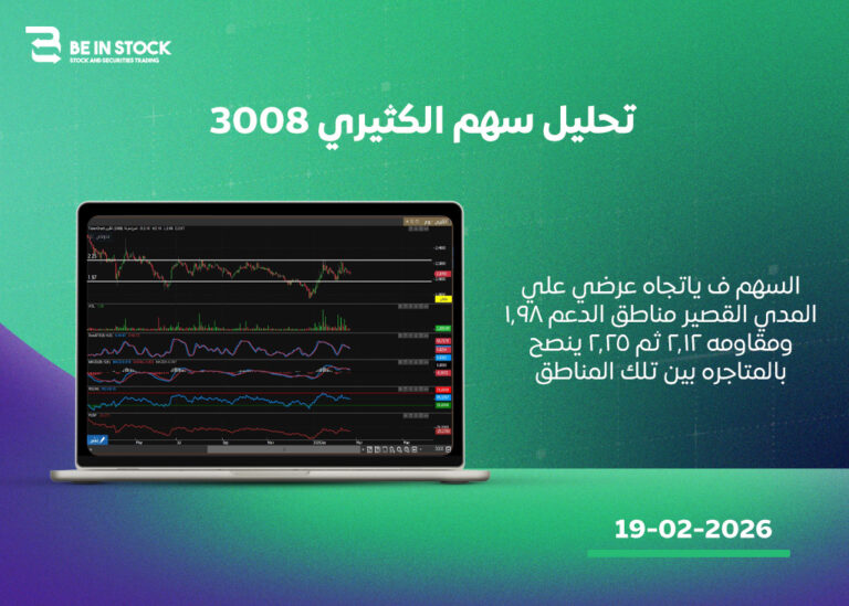 السهم ف ياتجاه عرضي علي المدي القصير مناطق الدعم 1.98 ومقاومه 2.12 ثم 2.25 ينصح بالمتاجره بين تلك المناطق