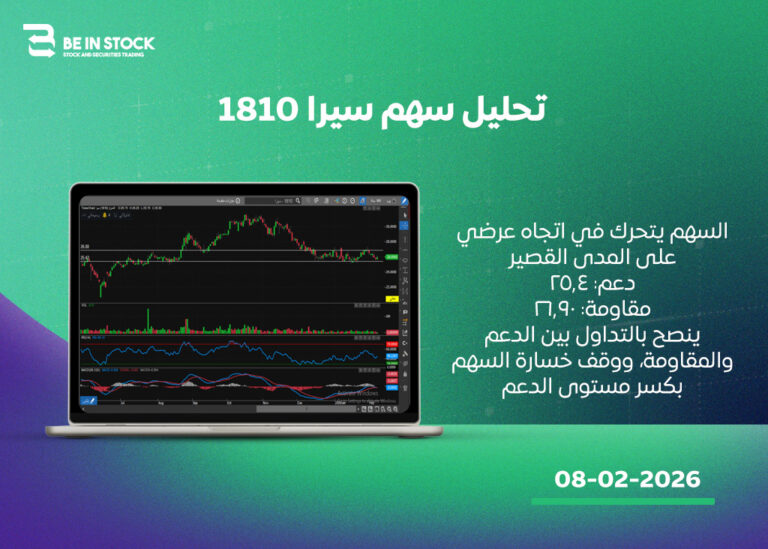 السهم يتحرك في اتجاه عرضي على المدى القصيردعم: 6.85 , 6.40مقاومة: 7.13 ، 7.55ينصح بالتداول بين الدعم والمقاومة، ووقف خسارة السهم بكسر مستوى الدعم