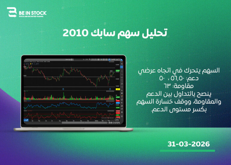 السهم يتحرك في اتجاه عرضي دعم: 56.50 ، 50 مقاومة: 63 ينصح بالتداول بين الدعم والمقاومة، ووقف خسارة السهم بكسر مستوى الدعم.
