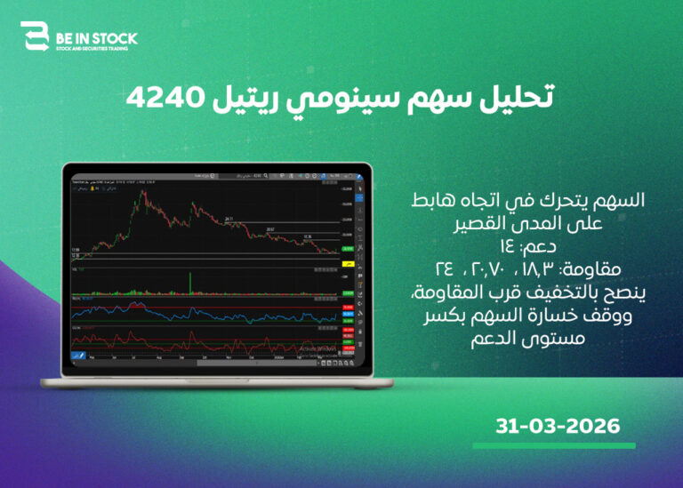 السهم يتحرك في اتجاه هابط على المدى القصير دعم: 14 مقاومة: 18.3 ، 20.70 ، 24 ينصح بالتخفيف قرب المقاومة، ووقف خسارة السهم بكسر مستوى