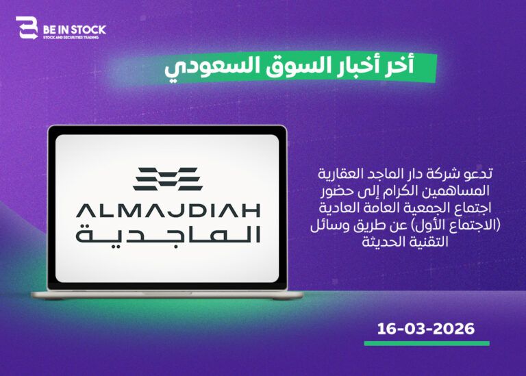 أعلنت شركة دار الماجد العقارية عن دعوة مساهميها إلى حضور اجتماع الجمعية العامة العادية (الاجتماع الأول)، والذي سيُعقد عن طريق وسائل التقنية الحديثة، وذلك لمناقشة
