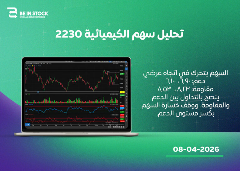 السهم يتحرك في اتجاه عرضي دعم: 6.90 ، 6.10 مقاومة: 8.23 ، 8.53 ينصح بالتداول بين الدعم والمقاومة، ووقف خسارة السهم بكسر مستوى الدعم.