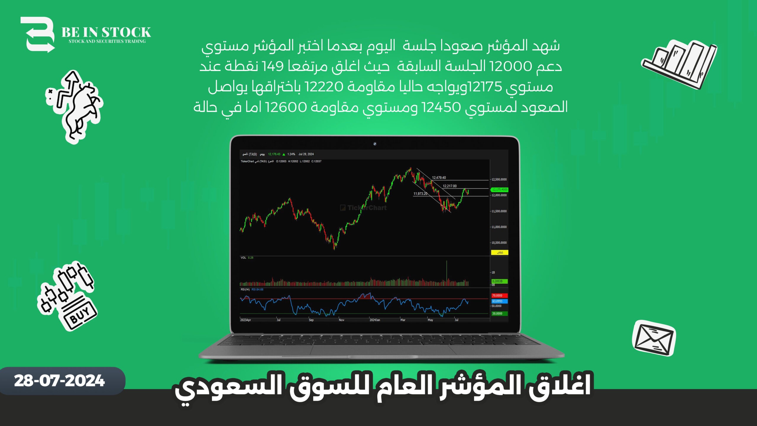 شهد المؤشر صعودا جلسة اليوم بعدما اختبر المؤشر مستوي دعم 12000 الجلسة السابقة حيث اغلق مرتفعا 149 نقطة عند مستوي 12175ويواجه حاليا مقاومة 12220 باختراقها يواصل الصعود لمستوي 12450 ومستوي مقاومة 12600 اما في حالة كسر مستوي 12100 مرة اخري يختبر مستوي دعم ثاني 11950