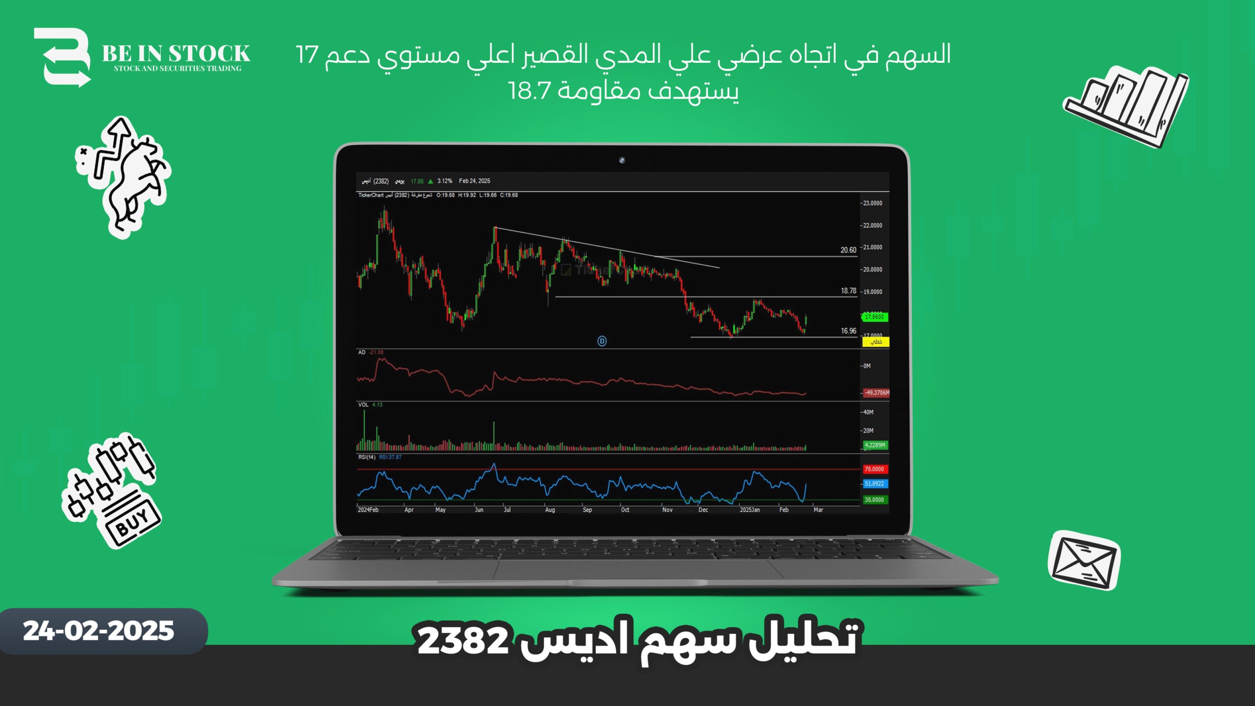 السهم في اتجاه عرضي علي المدي القصير اعلي مستوي دعم 17 يستهدف مقاومة 18.7