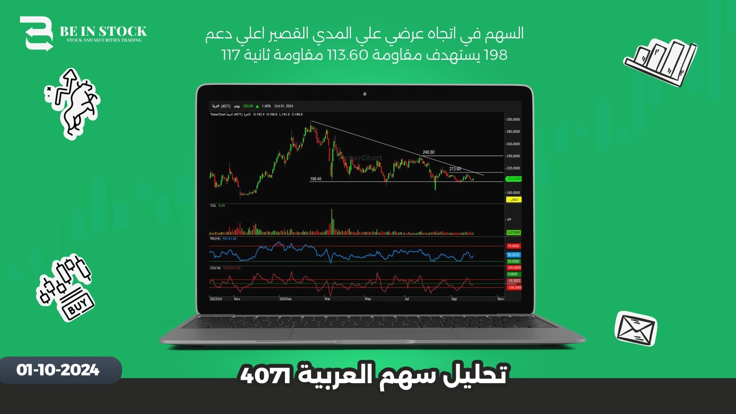السهم في اتجاه عرضي علي المدي القصير اعلي دعم 198 يستهدف مقاومة 113.60 مقاومة ثانية 117