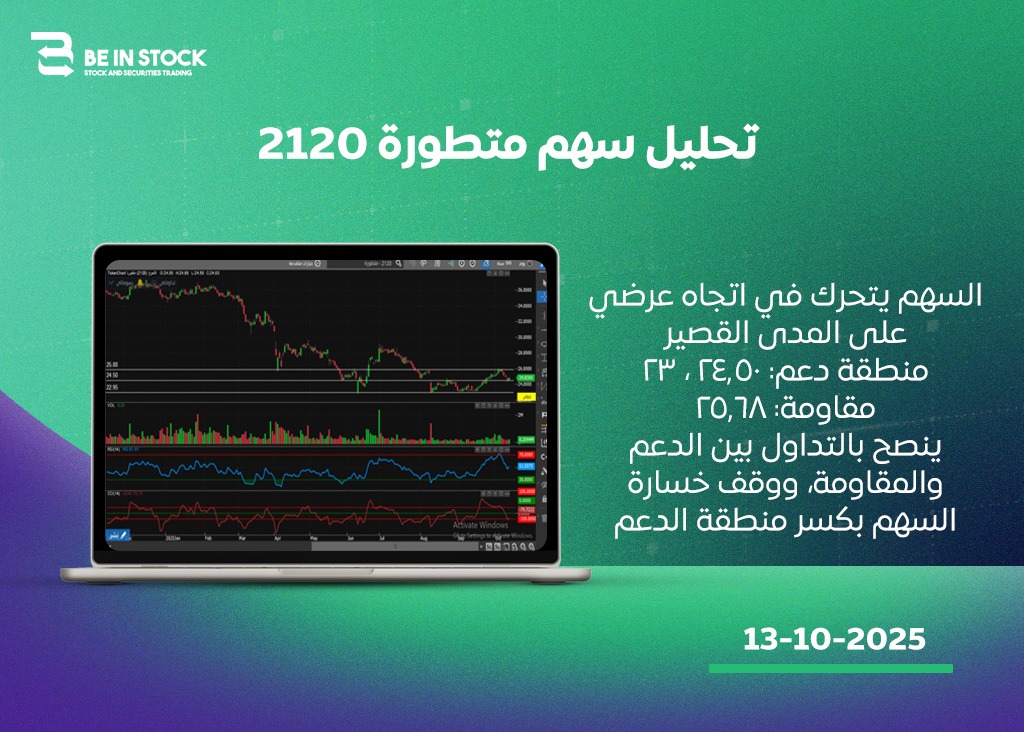 السهم يتحرك في اتجاه عرضي على المدى القصيرمنطقة دعم: ٢٤.٥٠ ، ٢٣مقاومة: ٢٥.٦٨ينصح بالتداول