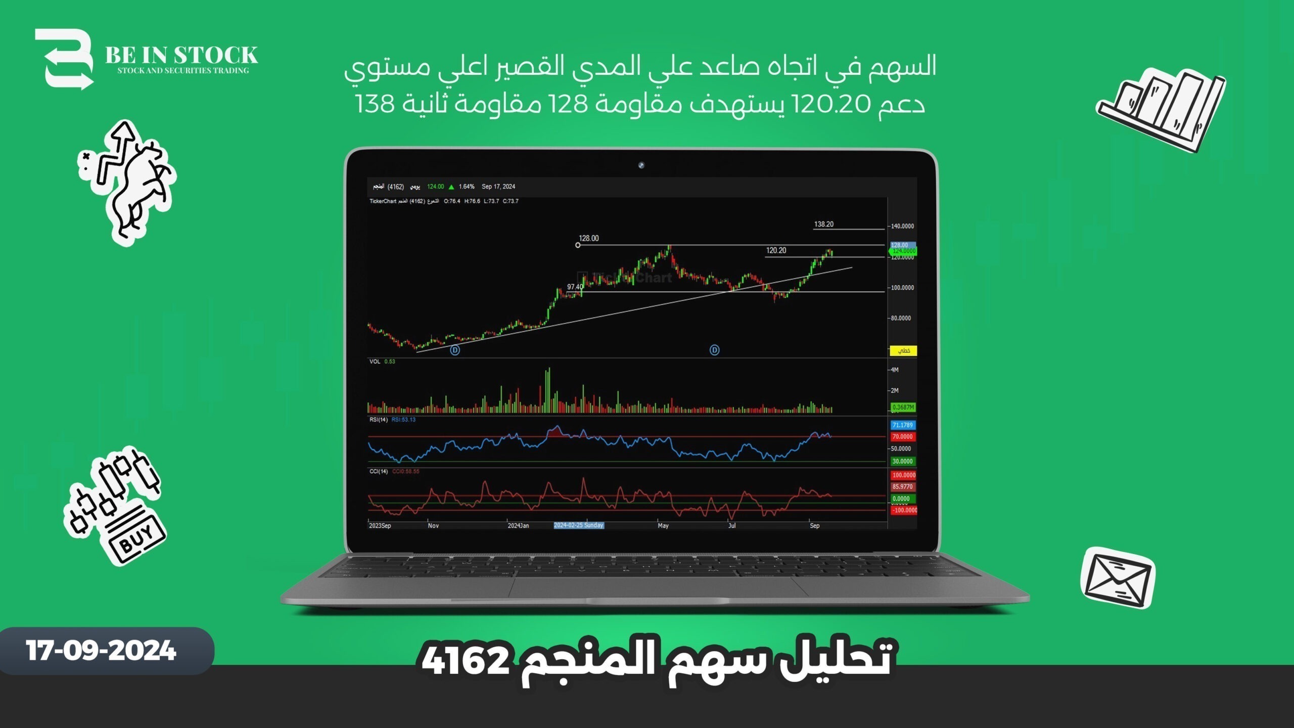 السهم يتحرك في اتجاه عرضي دعم: 126 مقاومة: 140 ، 160 ينصح بالتداول بين