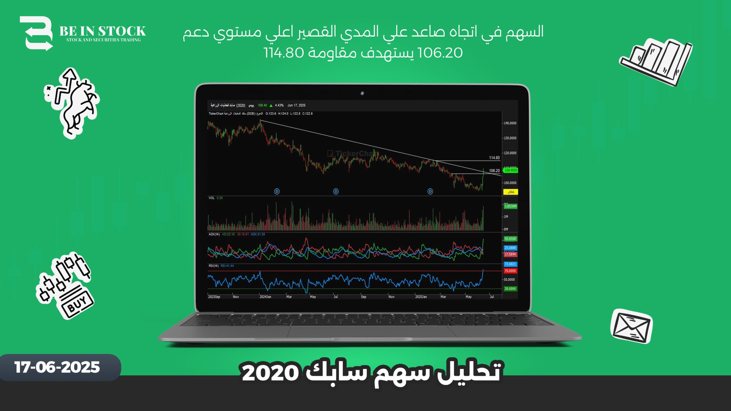 السهم في اتجاه صاعد علي المدي القصير اعلي مستوي دعم 106.20 يستهدف مقاومة 114.80