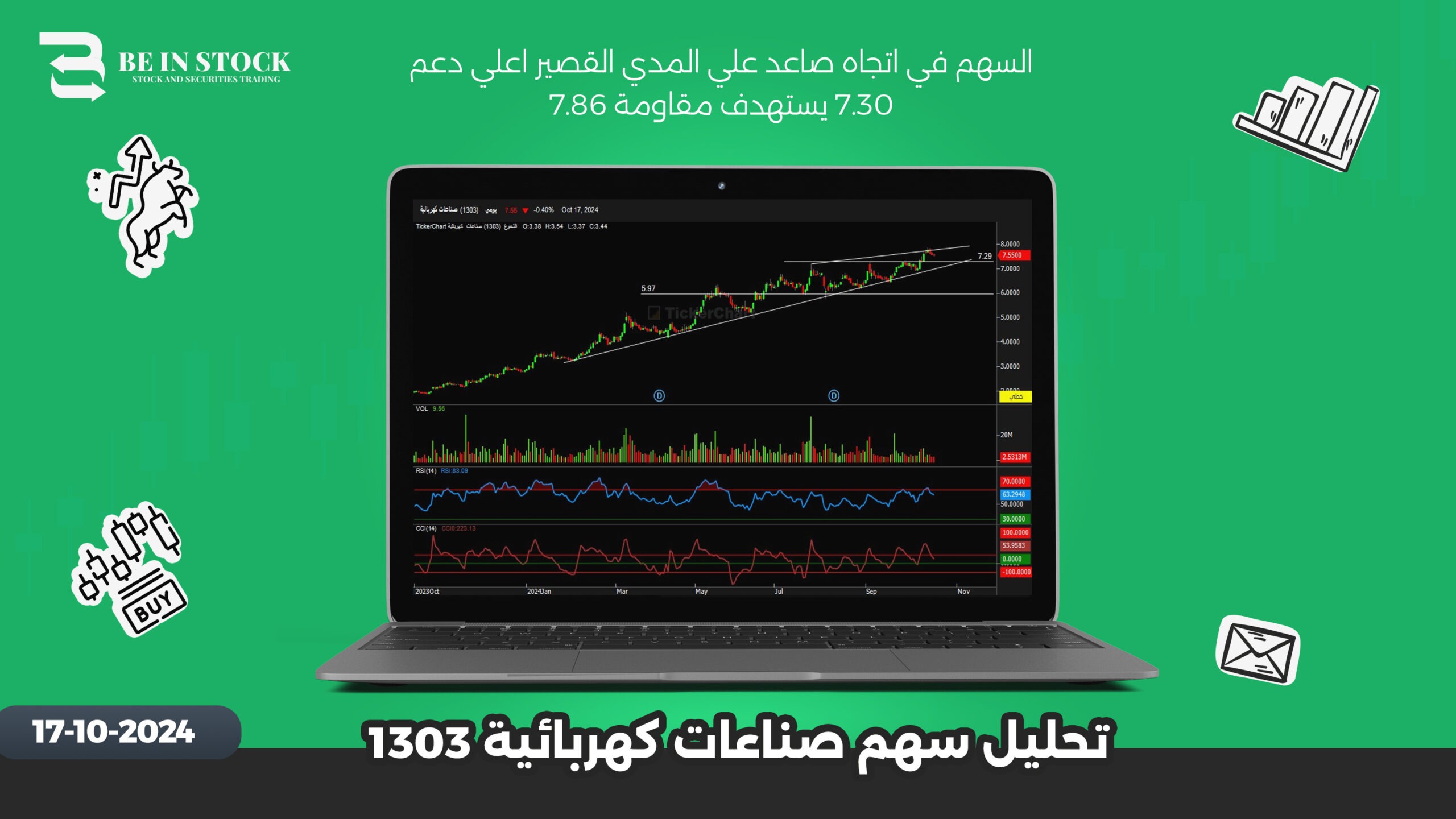 السهم في اتجاه صاعد علي المدي القصير اعلي دعم 7.30 يستهدف مقاومة 7.86