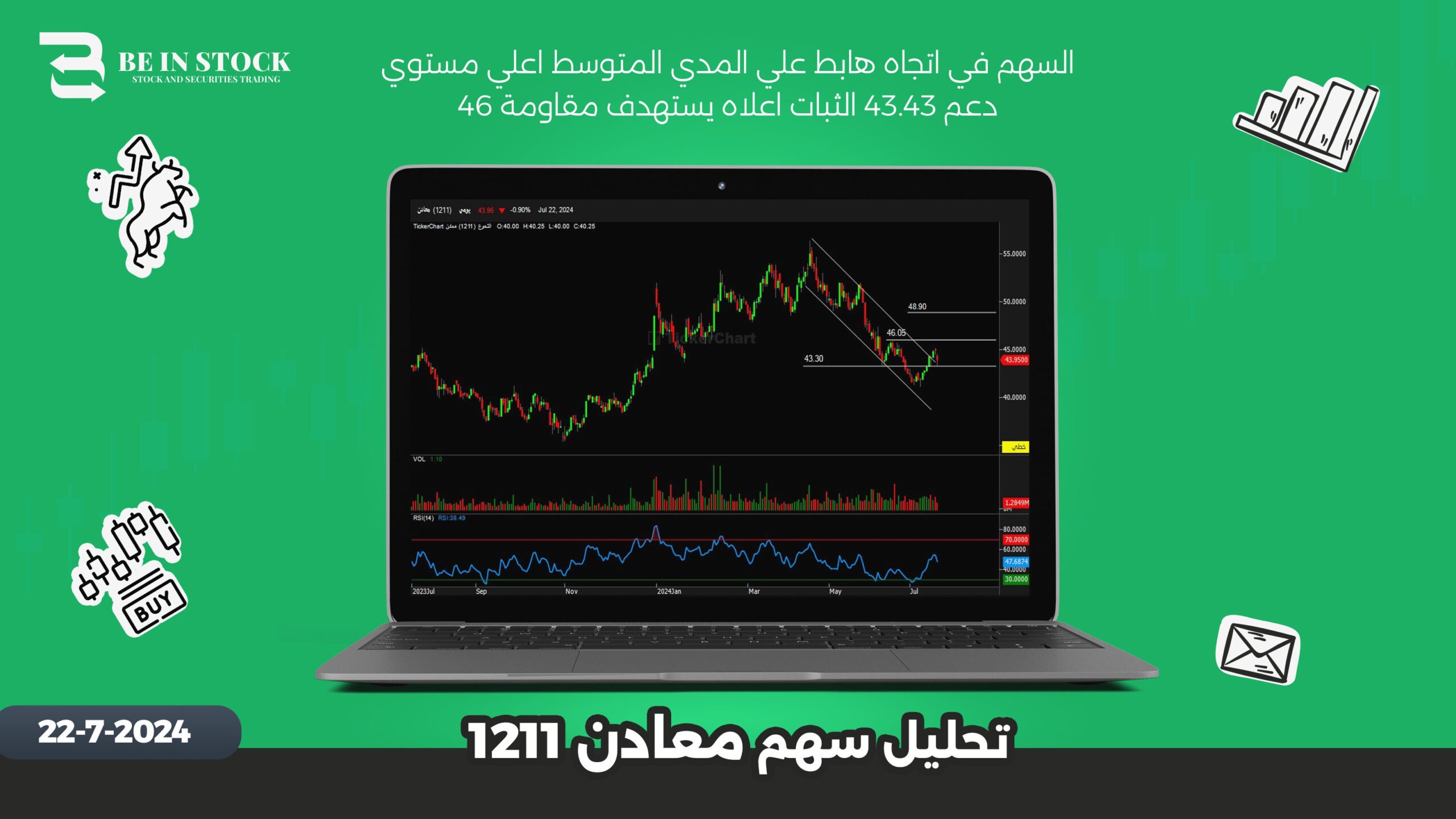 السهم في اتجاه هابط علي المدي المتوسط اعلي مستوي دعم 43.43 الثبات اعلاه يستهدف مقاومة 46