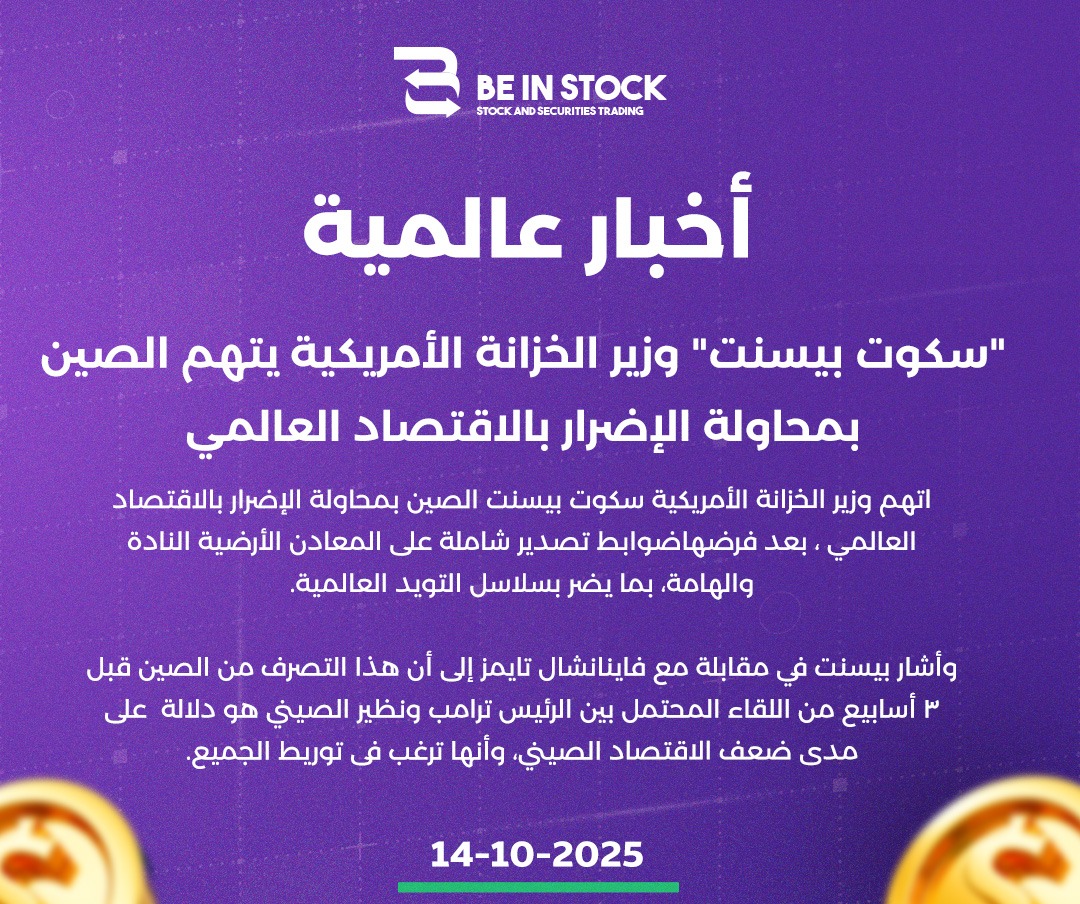 اتهم وزير الخزانة الأمريكية سكوت بيسنت الصين بمحاولة الإضرار بالاقتصاد العالمي ، بعد فرضهاضوابط