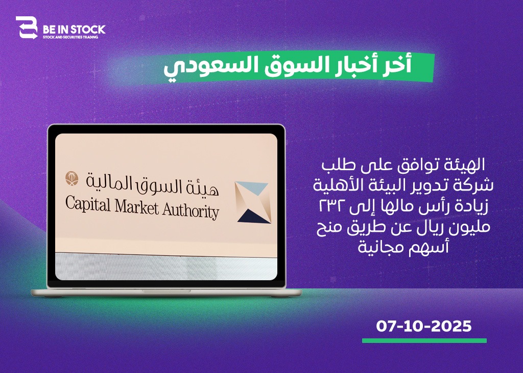 الهيئة توافق على طلب شركة تدوير البيئة الأهلية زيادة رأس مالها إلى 232 مليون ريال عن طريق منح أسهم مجانية أكتوبر 7, 2025 لا توجد تعليقات