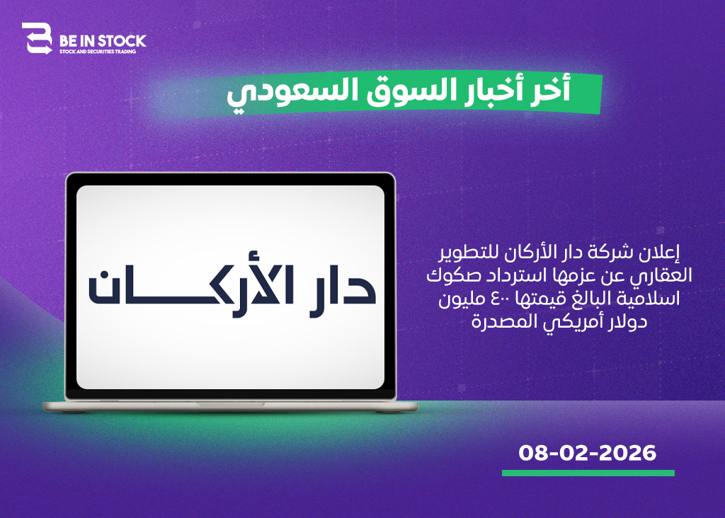 أعلنت شركة دار الأركان للتطوير العقاري عن عزمها استرداد صكوك إسلامية قائمة بقيمة إجمالية تبلغ 400 مليون دولار أمريكي، وذلك وفق شروط الإصدار، في إطار إدارة التزاماتها المالية وتعزيز هيكل رأس المال.