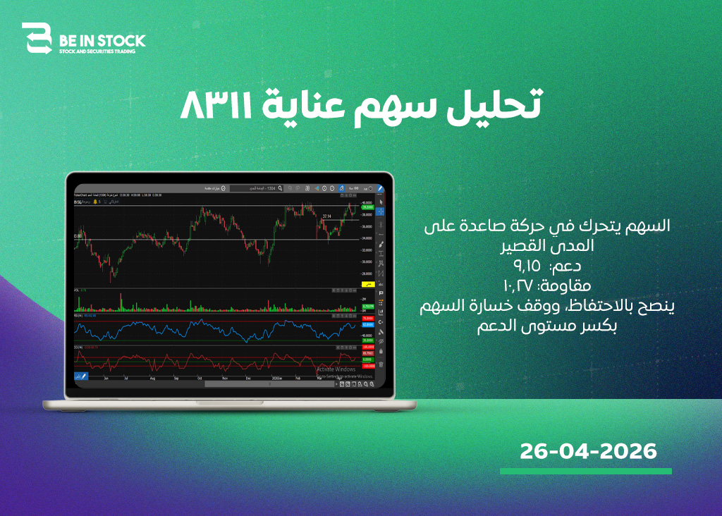 السهم يتحرك في حركة صاعدة على المدى القصيردعم: 9.15مقاومة: 10.27ينصح بالاحتفاظ، ووقف خسارة السهم