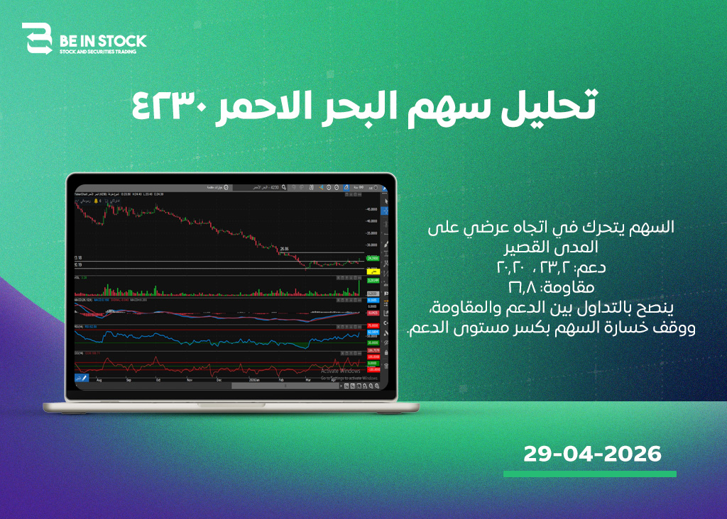 فنيًا: يتحرك المؤشر في اتجاه عرضي على المدى المتوسط، والقصير.