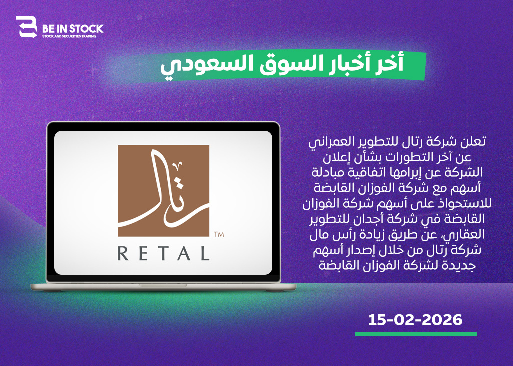 تعلن شركة رتال للتطوير العمراني عن آخر التطورات بشأن إعلان الشركة عن إبرامها اتفاقية مبادلة أسهم مع شركة الفوزان القابضة للاستحواذ على أسهم شركة الفوزان القابضة في شركة أجدان للتطوير العقاري، عن طريق زيادة رأس مال شركة رتال من خلال إصدار أسهم جديدة لشركة الفوزان القابضة