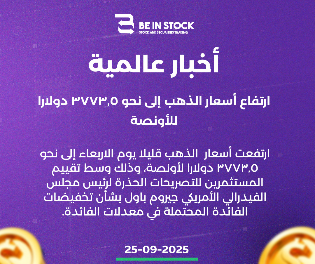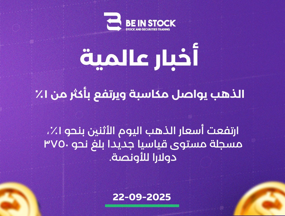 ارتفاع أسعار الذهب 1% خلال تعاملات الأثنين لتصل إلى 3682 دولارا للأونصة سبتمبر 16, 2025 لا توجد تعليقات
