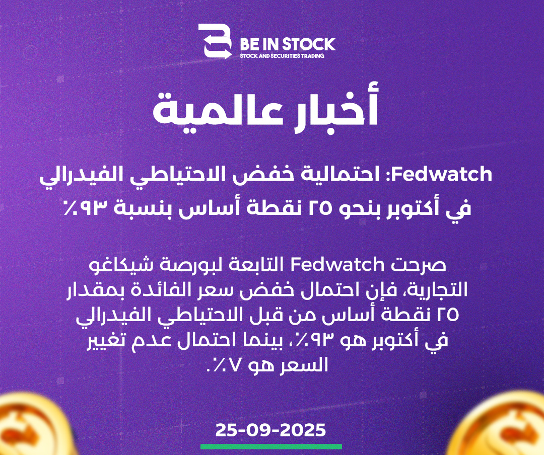 Fedwatch: احتمالية خفض الاحتياطي الفيدرالي في أكتوبر بنحو 25 نقطة أساس بنسبة 93% سبتمبر 25, 2025 لا توجد تعليقات