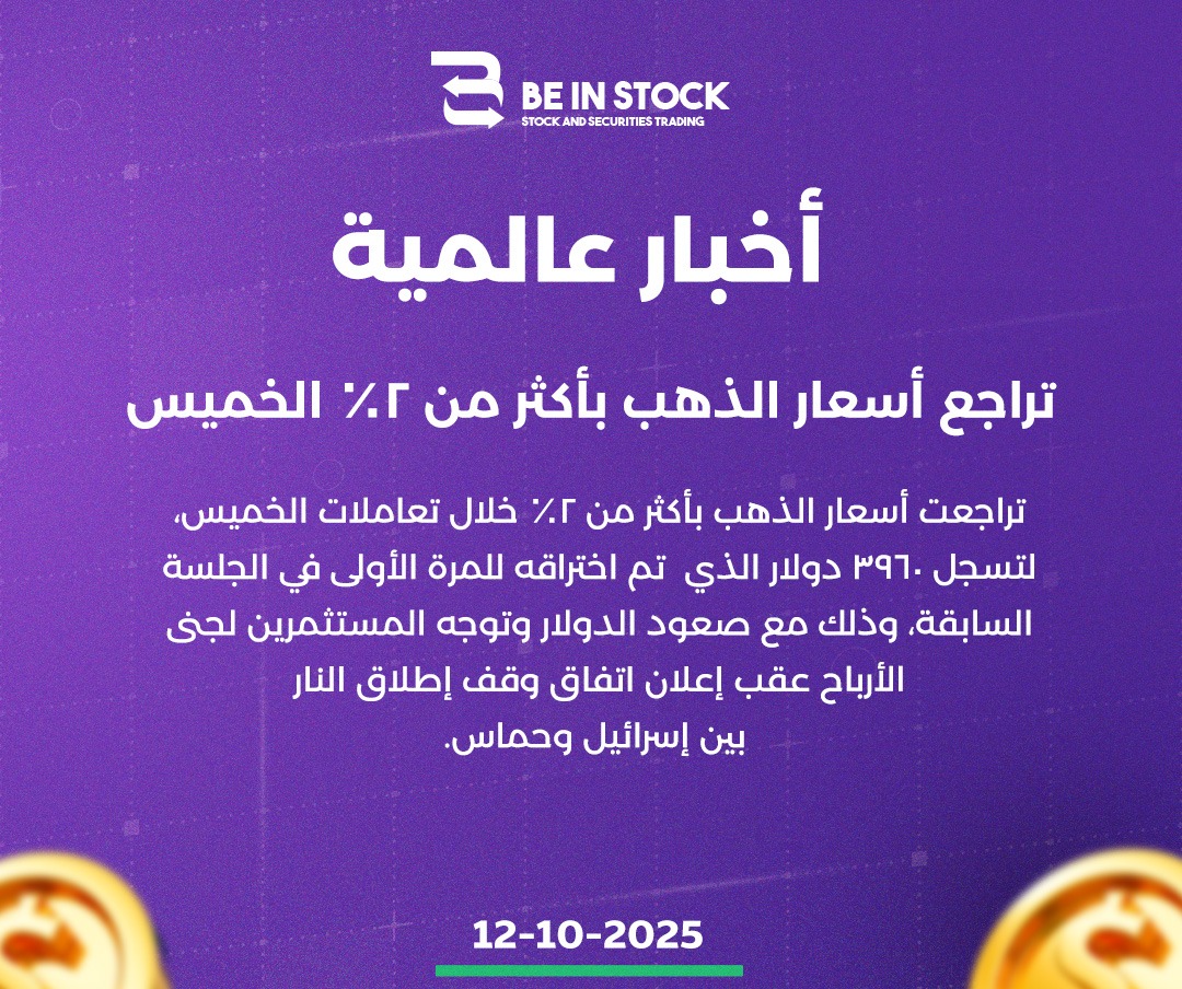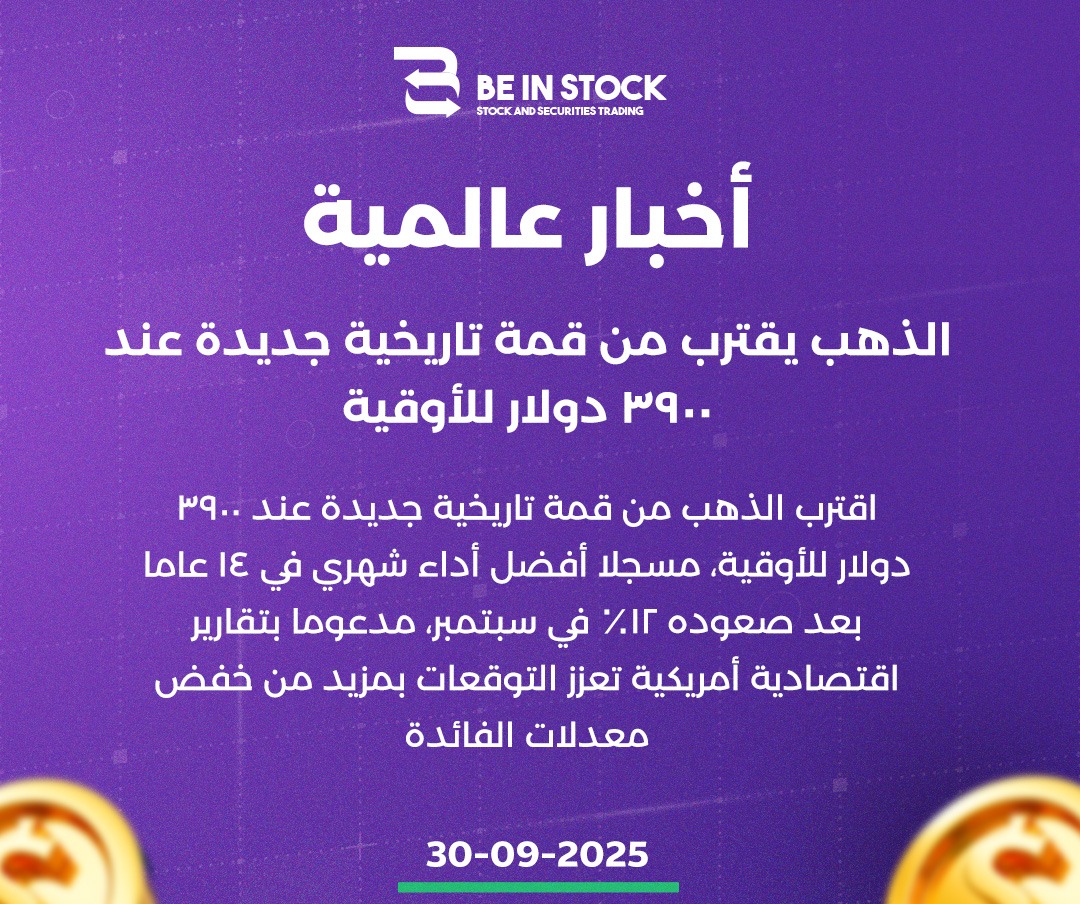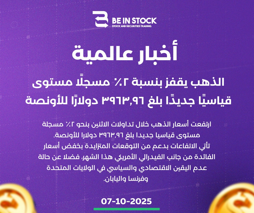 الذهب يقفز بنسبة 2% مسجلًا مستوى قياسيًا جديدًا بلغ 3963.96 دولارًا للأونصة أكتوبر 7, 2025 لا توجد تعليقات