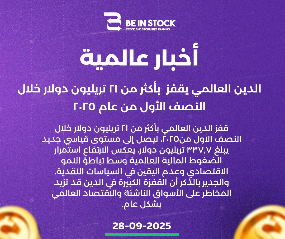 الدين العالمي يقفز بأكثر من 21 تريليون دولار خلال النصف الأول من عام 2025 سبتمبر 29, 2025 لا توجد تعليقات