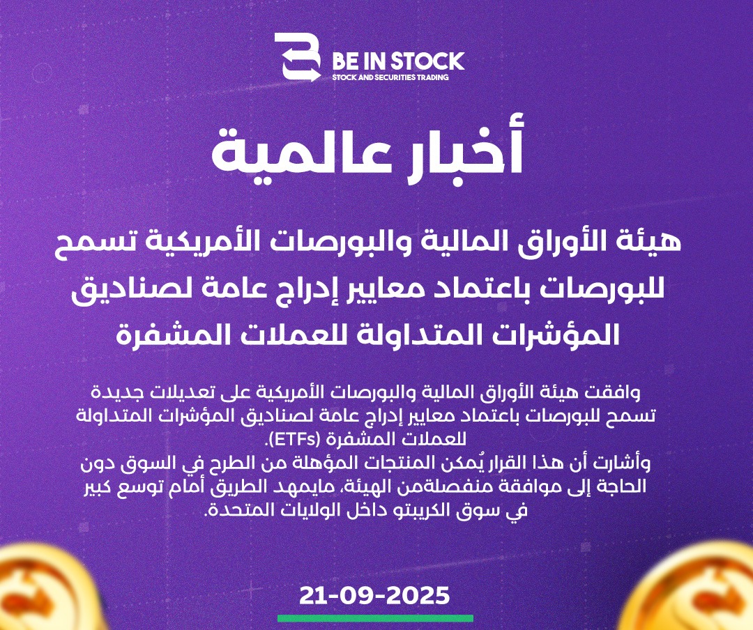 هيئة الأوراق المالية والبورصات الأمريكية تسمح للبورصات باعتماد معايير إدراج عامة لصناديق المؤشرات المتداولة للعملات المشفرة سبتمبر 21, 2025 لا توجد تعليقات