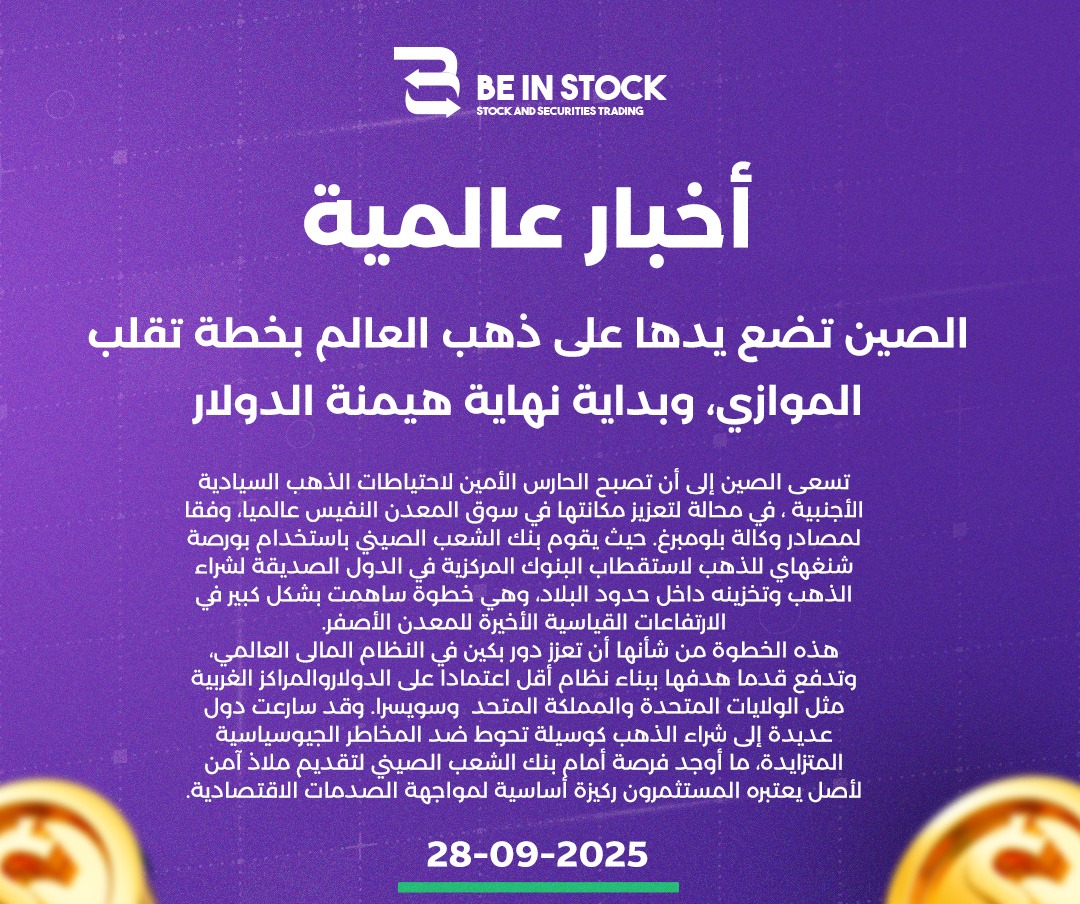 الصين تضع يدها على ذهب العالم بخطة تقلب الموازي، وبداية نهاية هيمنة الدولار سبتمبر 29, 2025 لا توجد تعليقات
