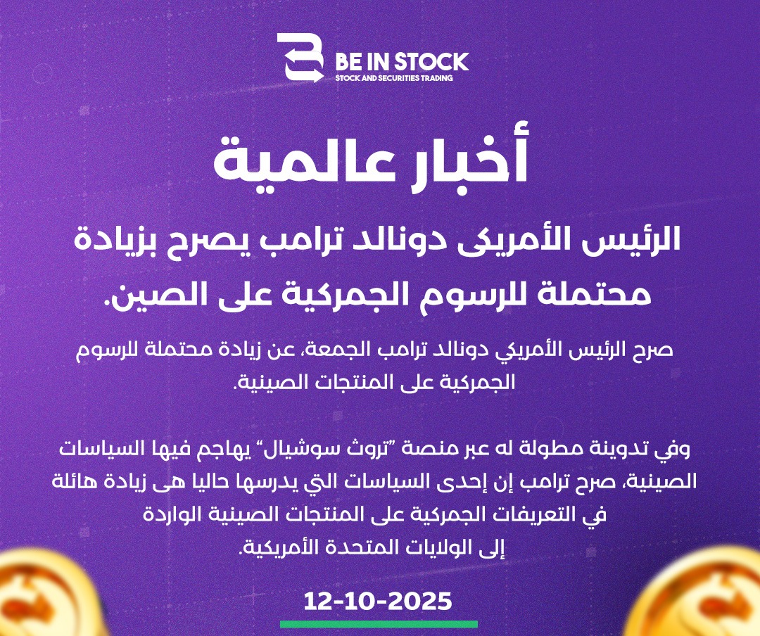 الرئيس الأمريكى دونالد ترامب يصرح بزيادة محتملة للرسوم الجمركية على الصين أكتوبر 12, 2025 لا توجد تعليقات