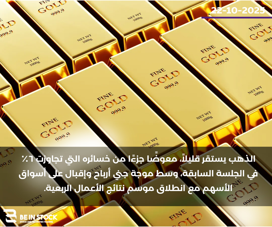الذهب يستقر قليلاً، معوضًا جزءًا من خسائره التي تجاوزت 6% في الجلسة السابقة، وسط موجة جني أرباح وإقبال على أسواق الأسهم مع انطلاق موسم نتائج الأعمال الربعية.