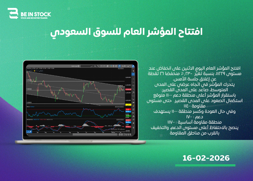 اختتم المؤشر العام للسوق السعودي “تاسي” جلسة اليوم الأحد عند مستوى 11228 منخفضًا بنسبة