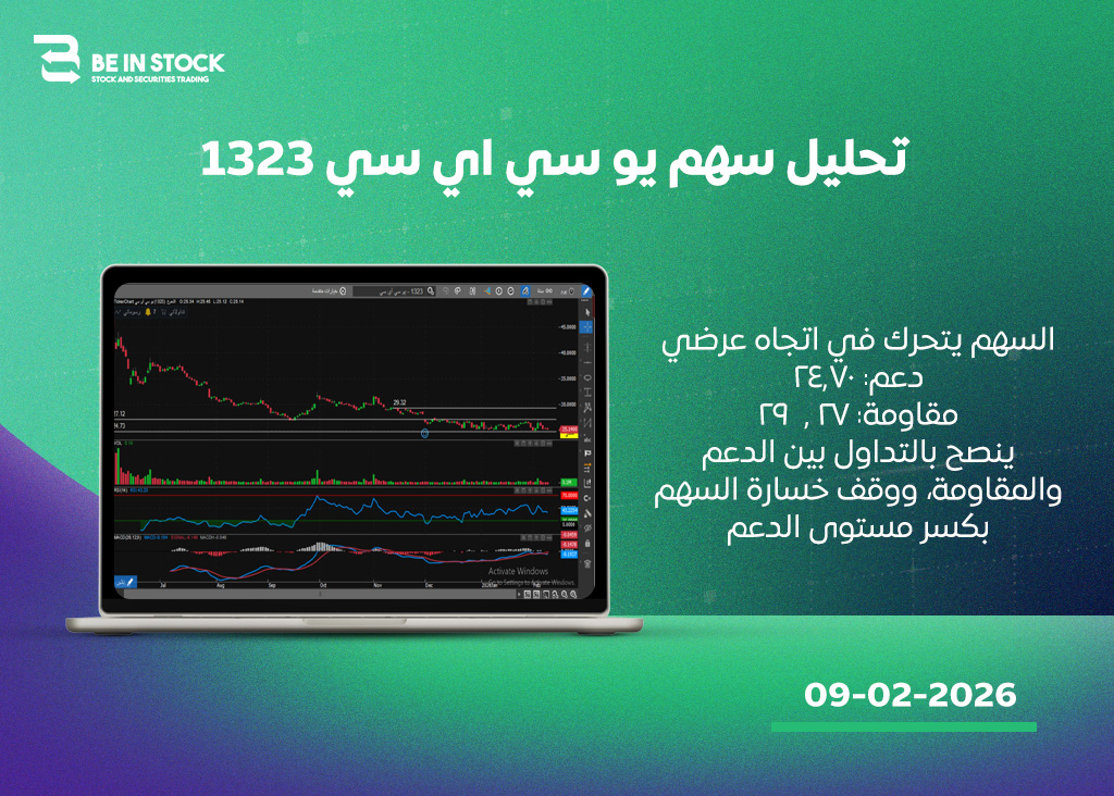 السهم يتحرك في اتجاه عرضي على المدى القصيردعم: 128.80مقومة: 136.50ينصح بالتداول بين الدعم والمقاومة،